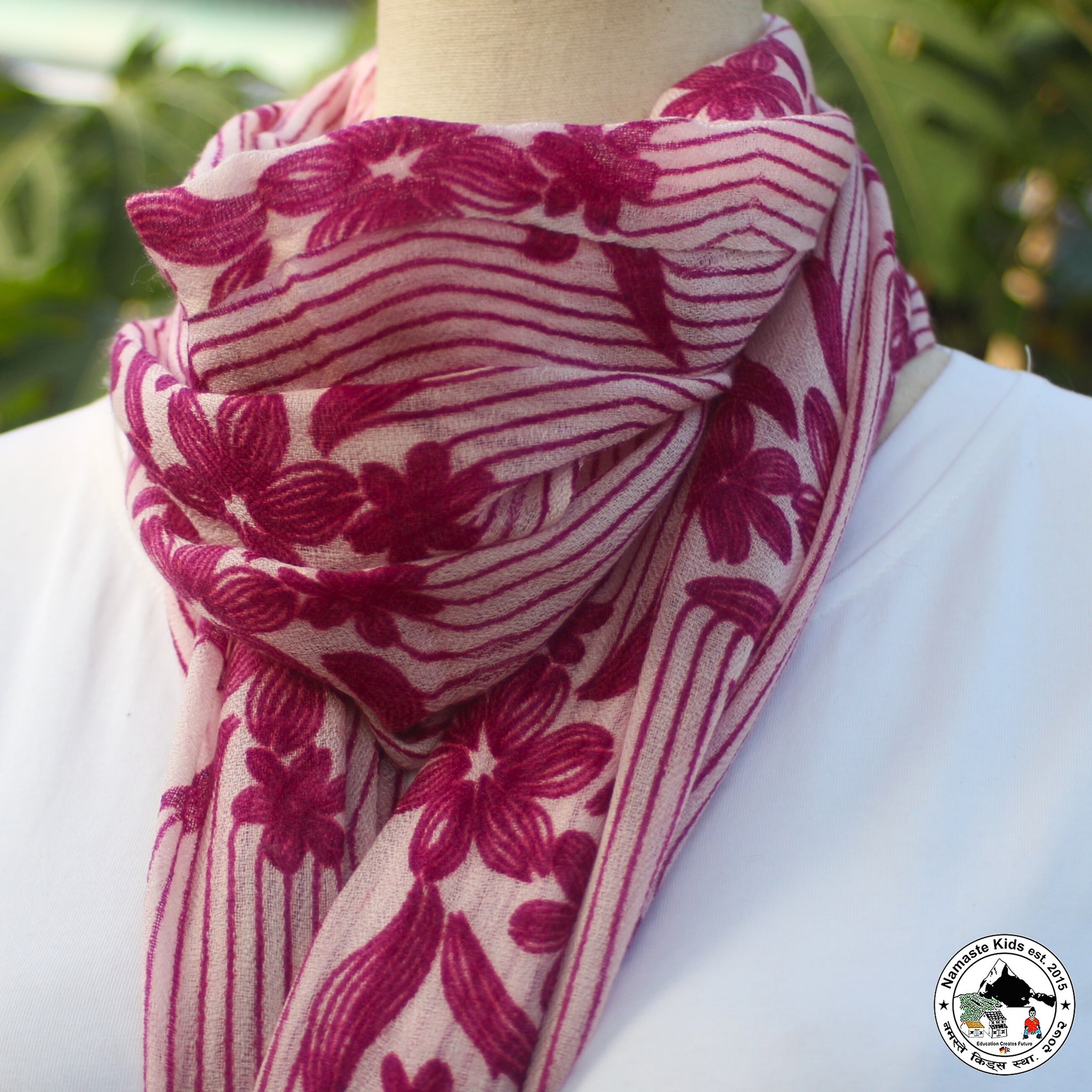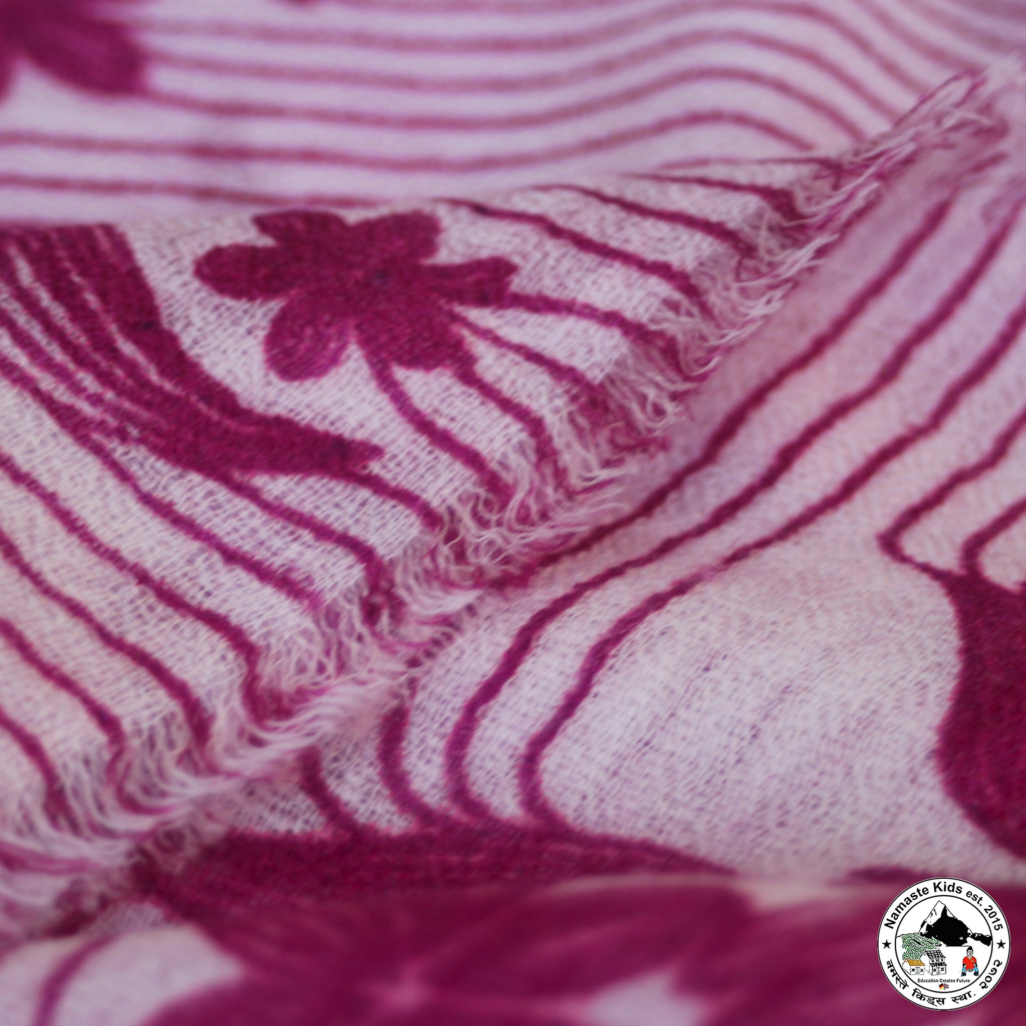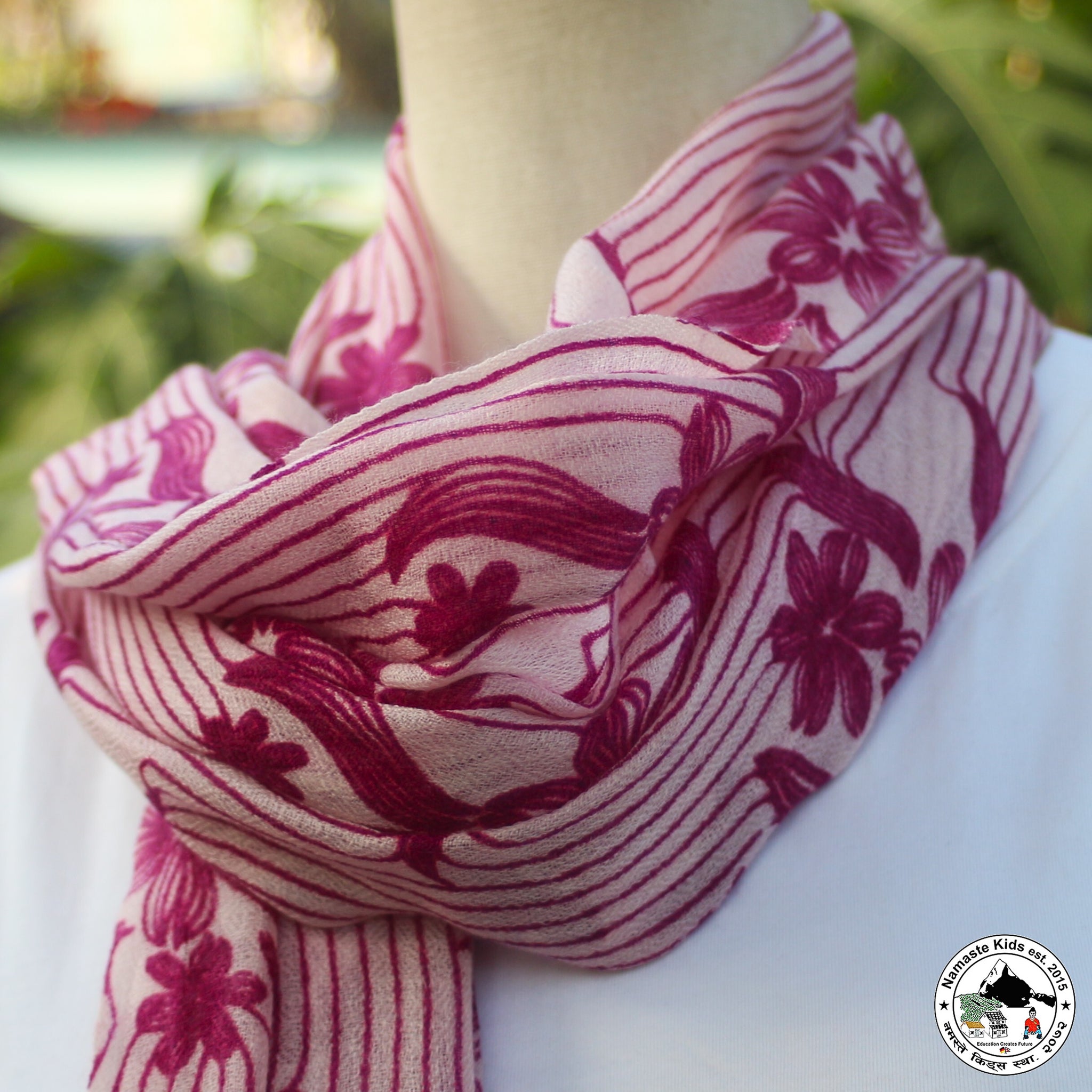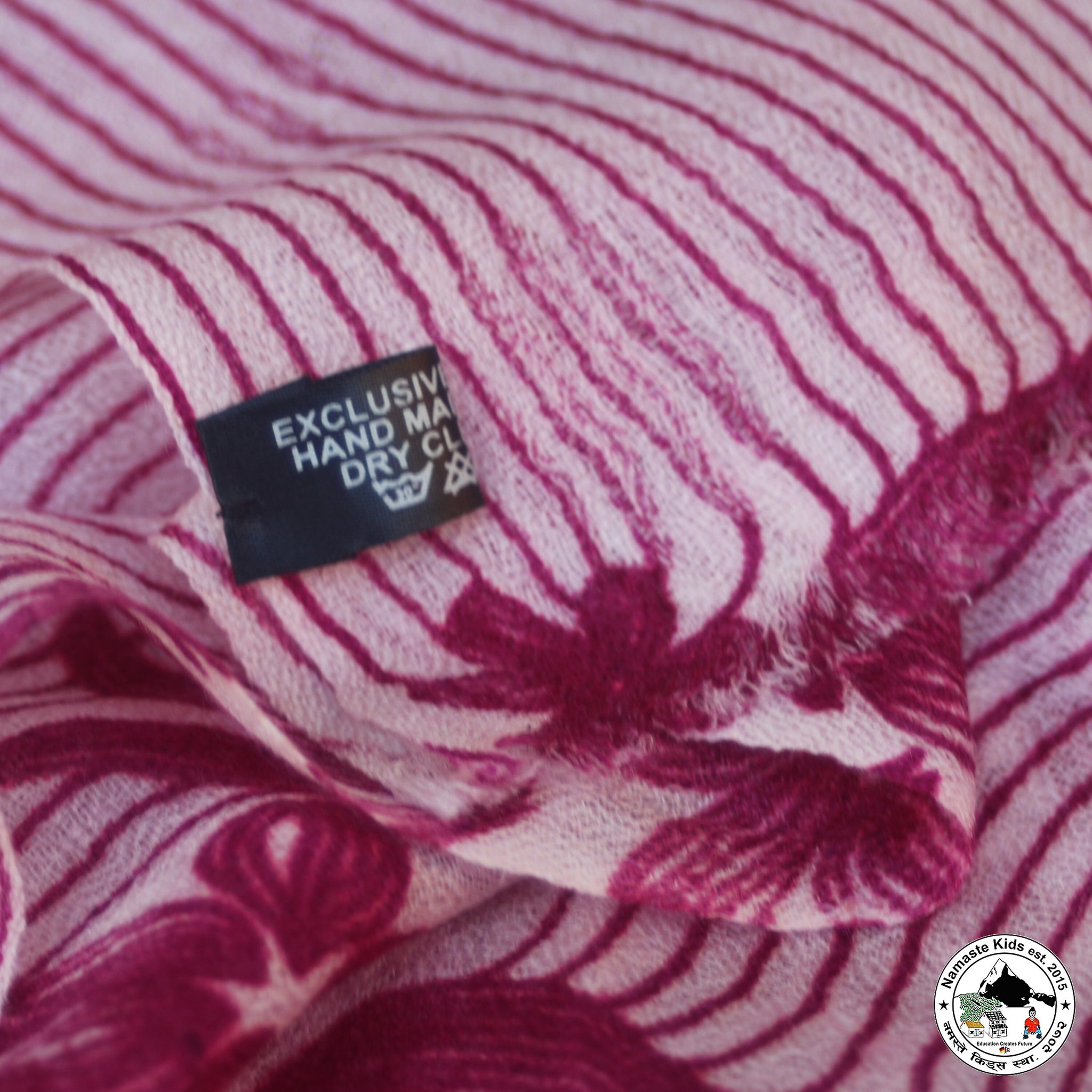 Dieser wunderschöne, zarte Schal aus Kaschmir- und Naturwolle kann durch seine Größe auch als Umhängetuch oder Stola verwendet werden.